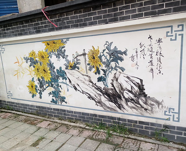 大部分情況來說,農村墻體彩繪都是用丙烯顏料來畫的,成本低,效果好,能夠有一定程度的防水。