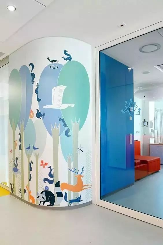 墻繪卡通圖案在幼兒園的主題墻裝飾中非常流行,成本低,效果好,為幼兒園設(shè)計(jì)中首選裝飾方法。