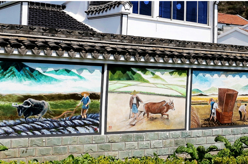 大部分情況來說,農村墻體彩繪都是用丙烯顏料來畫的,成本低,效果好,能夠有一定程度的防水。