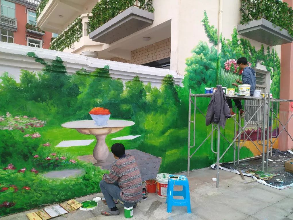 大部分情況來說,農村墻體彩繪都是用丙烯顏料來畫的,成本低,效果好,能夠有一定程度的防水。