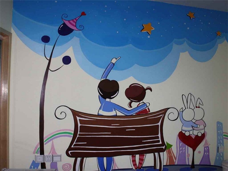2.酒店會所、商業店鋪的墻壁裝飾。合肥墻體彩繪創作的專家認為合適的墻體彩繪能夠提升酒店和會所的裝修檔次和審美造型、提供高層次的消費環境,并且使得裝飾空間變得充滿藝術化氣息,有雅致的品味。
